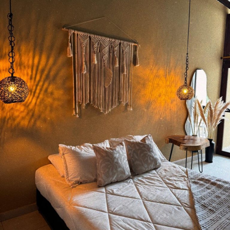 It features comfortable beds, soft lighting, and rustic décor with modern touches that encourage relaxation. Its harmonious space and connection to natural light make it the perfect place to disconnect and enjoy a pleasant stay.